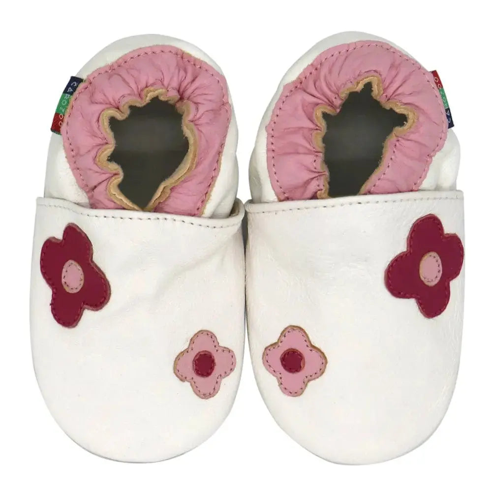 Sécurité et praticité avec les chaussons bébé en cuir | Fleurs roses