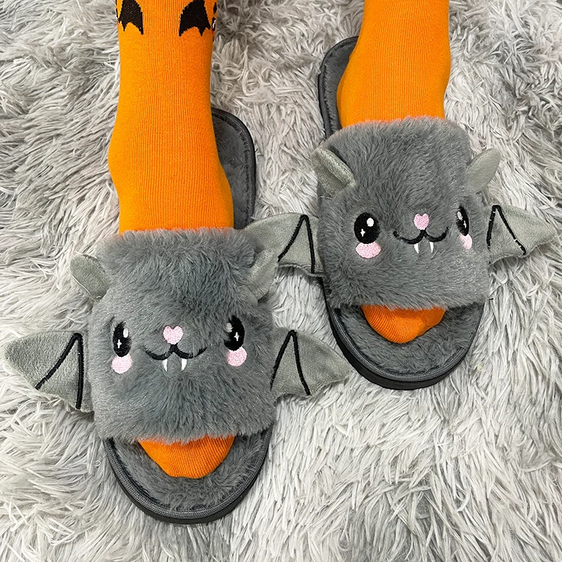 Chaussons et chaussettes Halloween enfants Chauve-Souris gris : praticité pour toute la famille