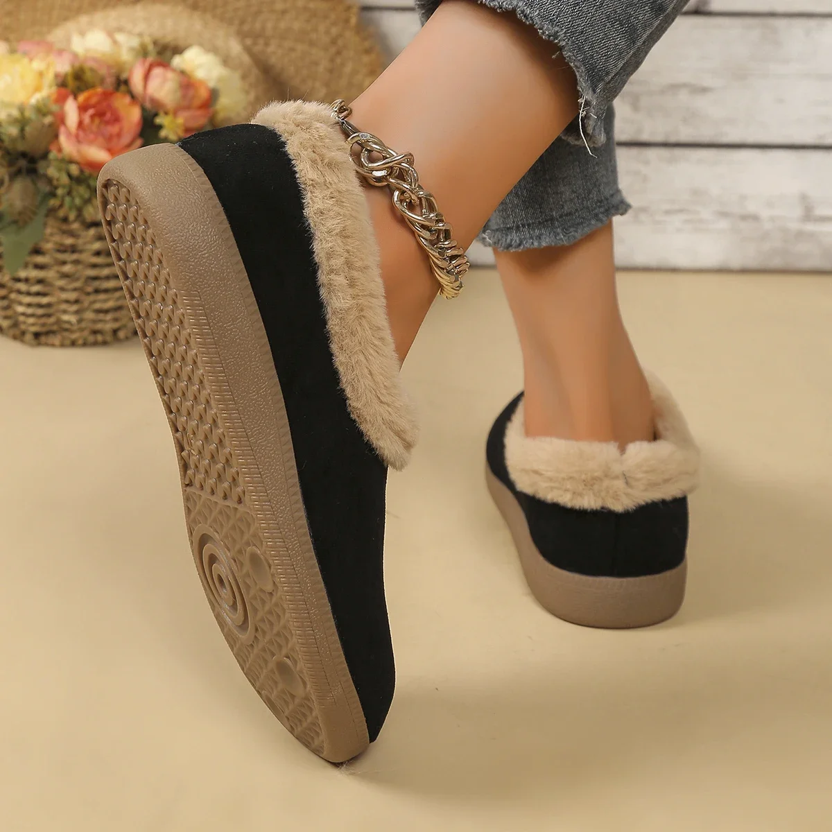 L’élégance des Chaussons femme fourrés antidérapants sécurisés Noirs se retrouve dans leur extérieur en faux daim parfaitement réussi. Cette touche de luxe discrète s’accorde avec toutes vos tenues d’intérieur, faisant de ces chaussons un accessoire à la mode et fonctionnel.