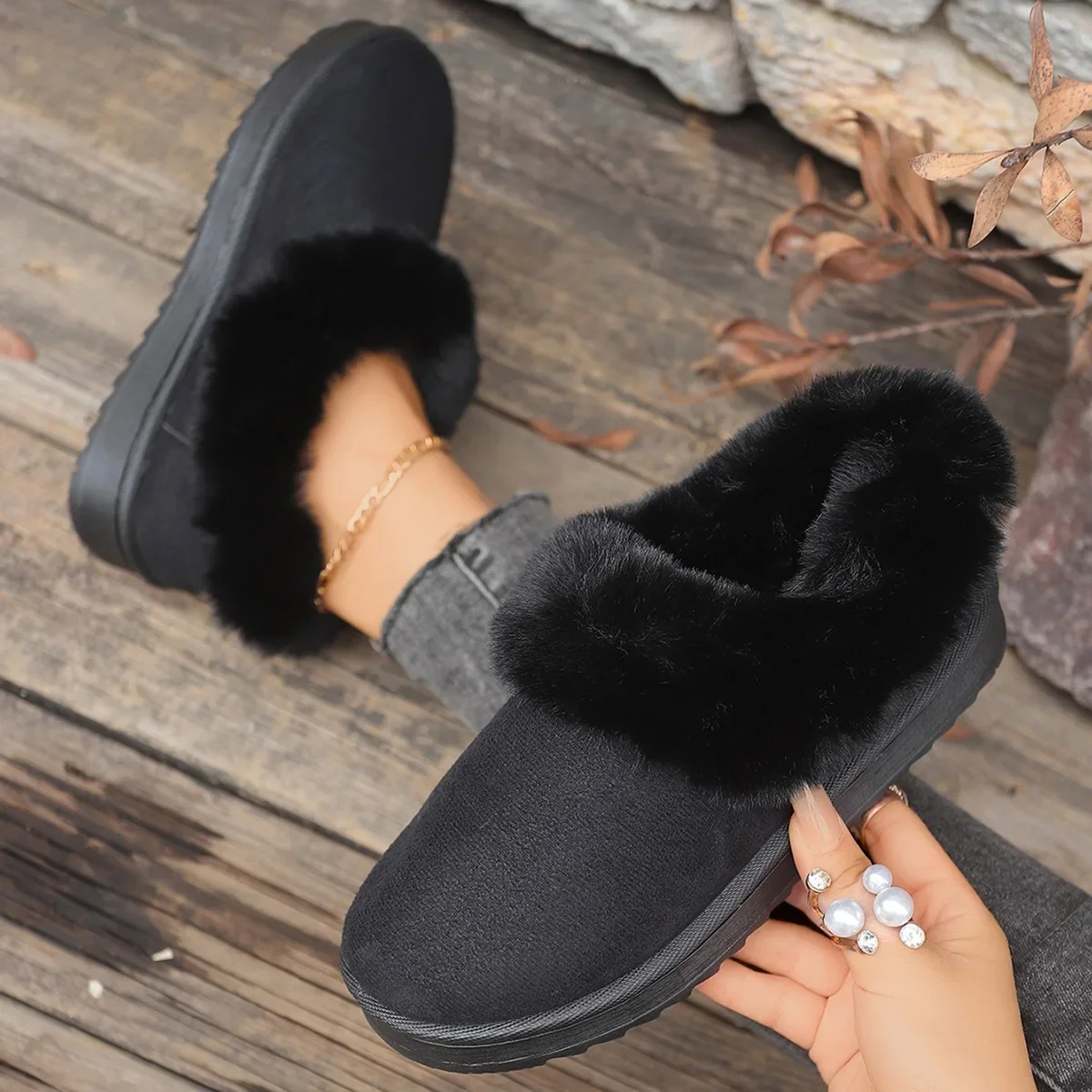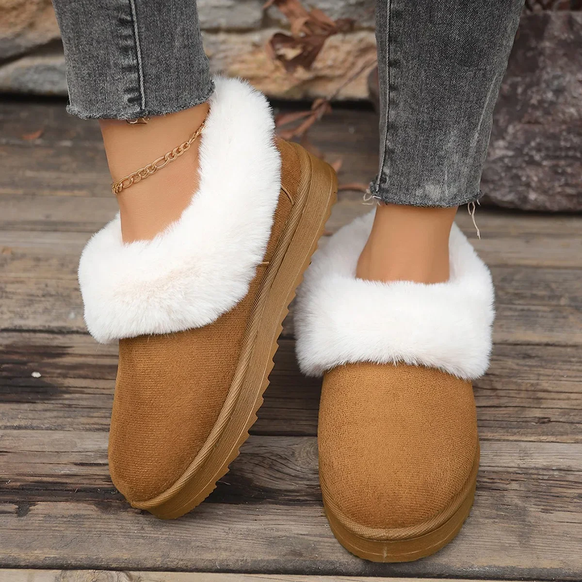Design élégant pour les chaussons fourrés en mouton retourné femme