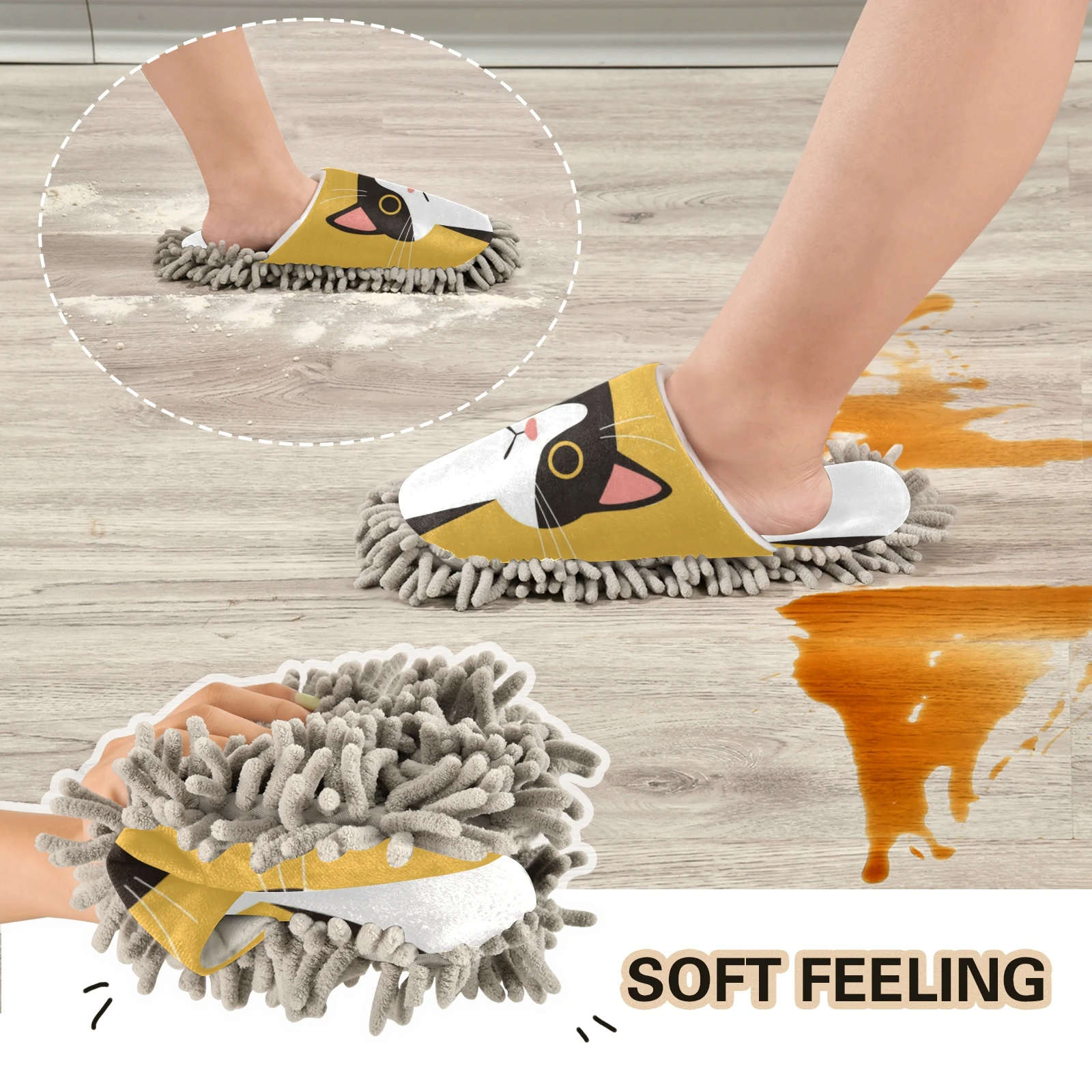 Chaussons serpillère motif chat pour une absorption rapide et efficace