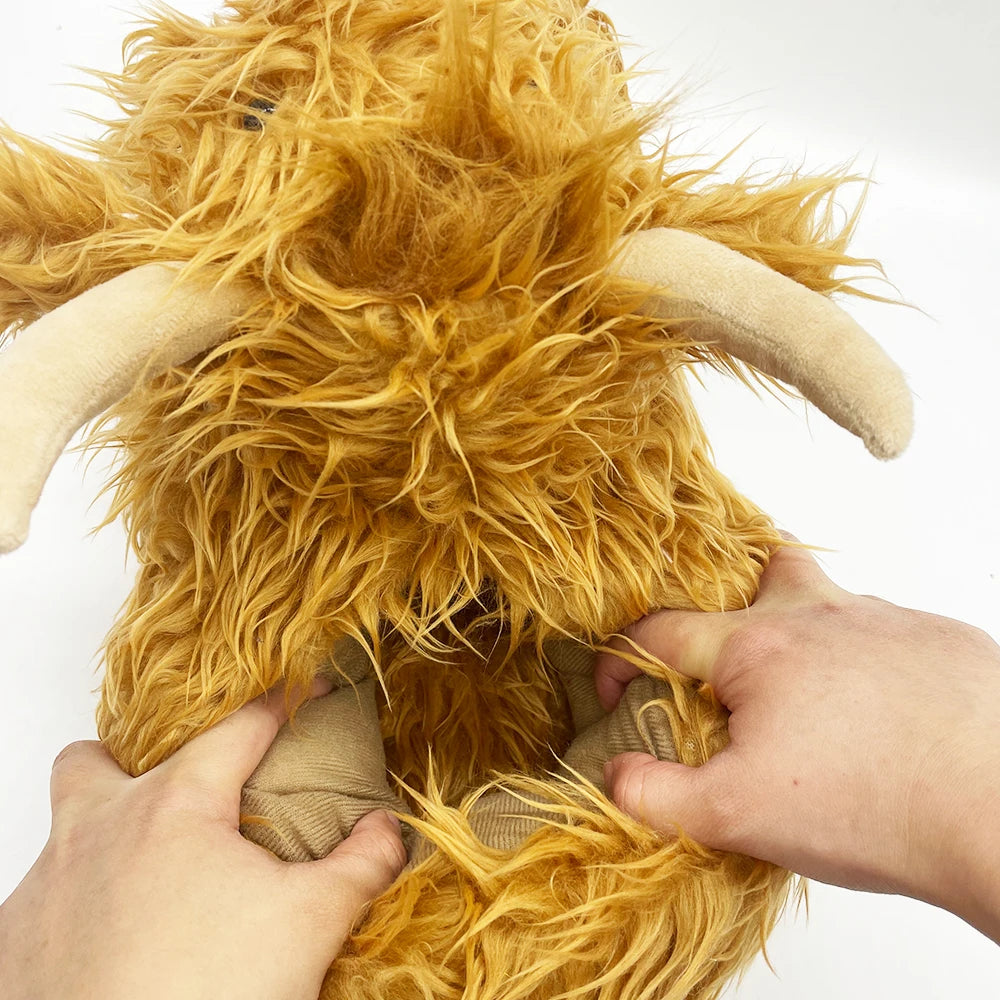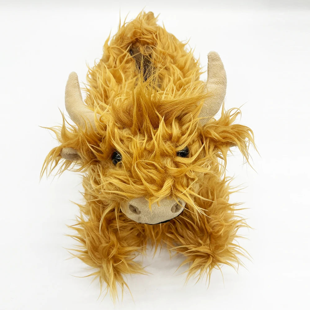Adoptez les Chaussons animaux – Vache Écossaise pour un confort unique et un style original chez vous.